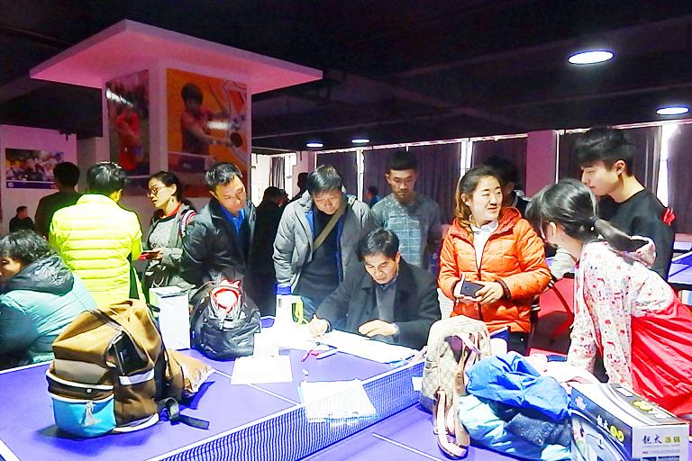 主动为乒赛服务的扬文武(热情帮助提前做好裁判记录编排)